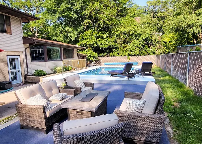 The 5-bedroom Spacious Getaway With Heated Private Pool! offers accommodation in Michigan City, at a 3.6 km distance from the 15 - acre Washington Park Zoo and 4.3 km from East Pier Lighthouse. The villa is approximately 427 square metres in size.